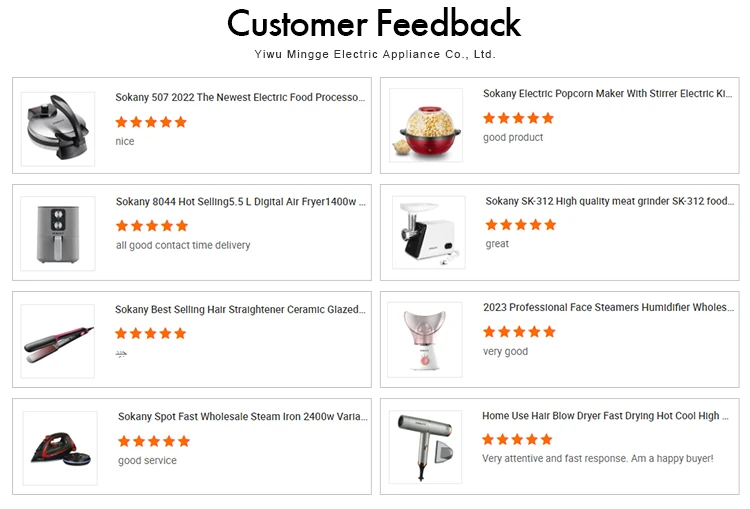 Q: Why Choose us? A: We have more than 20 years experience on home appliance (Kitchen, Life, Personal Care) with good reputation in the world. Professional manufacturing & trading company. Our factories located in Ningbo and Dongguan. All product with extremely high-standard quality assurance. Q: Can i get some sample? A: Yes, we can provide sample service. Q: What is your warranty time? A: We offer 12 months warranty, if any problem about the quality, please send the product doesn't work pictures or video as evidence, We will provide Maintenance Solution for problem solving Q: What is lead time? A: All product to shipping out in 3 days if it in stock after paid. Please contact customer service to confirm stock status before purchase.